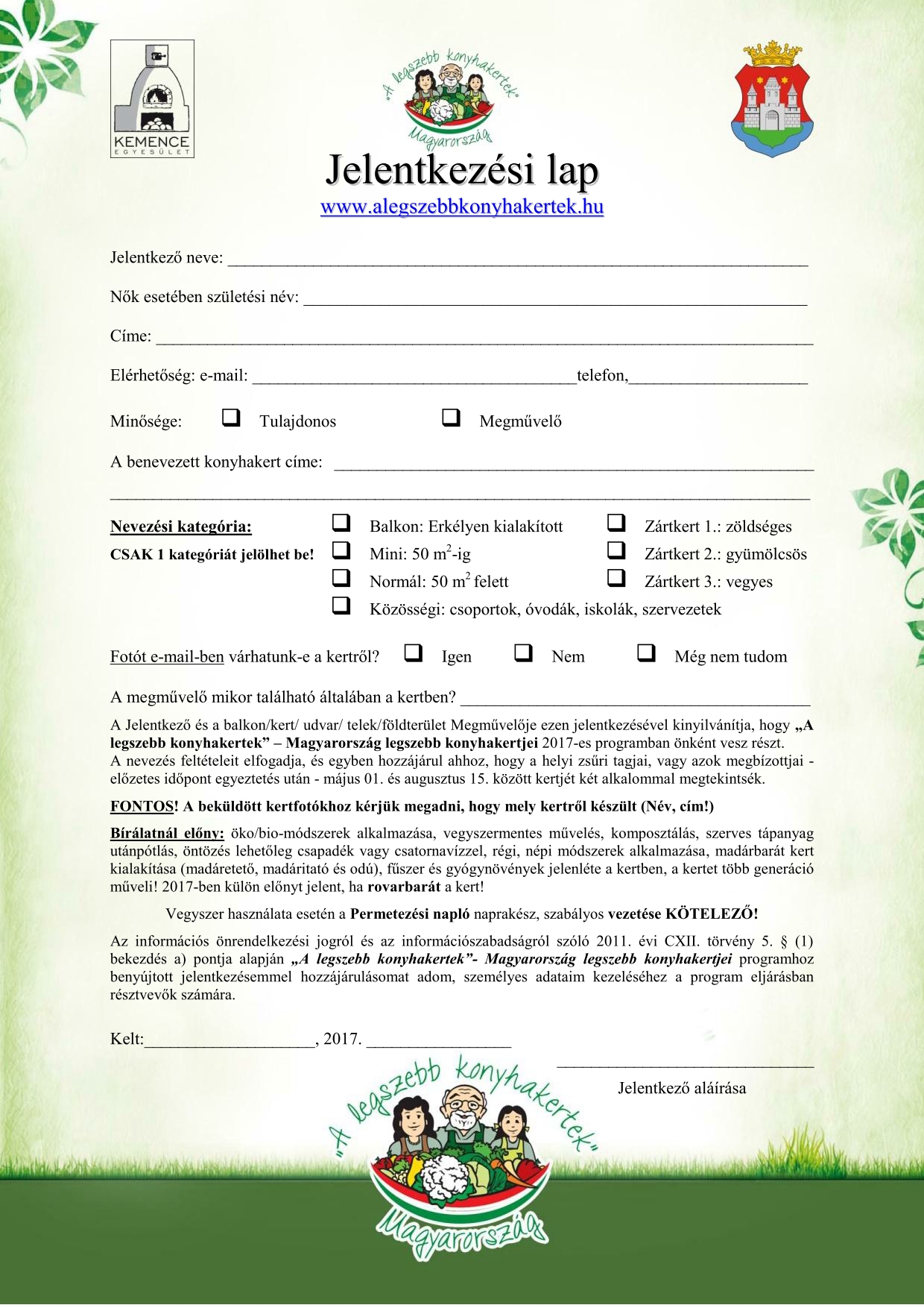 Jelentkezési lap kérhető és leadható: