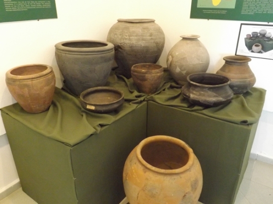 A födém alatt pincéből különböző tárolóedények, amforák, dörzstálak töredékei és a bennük tárolt gyümölcsök és növények, köztük datolya, alma, barack, körte és olíva magjai kerültek elő, de számos olívabogyóra és datolyára bukkantak megkövült, összeszáradt állapotban.
