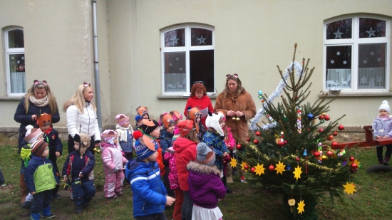 A Gesztenyés Óvoda gyermekei és az ovi dolgozói "A kis girbe-gurba fenyőfa" mese dramatizálásával és eljátszásával állították fel az intézmény karácsonyfáját az óvoda udvarán.