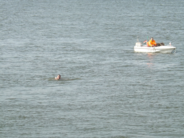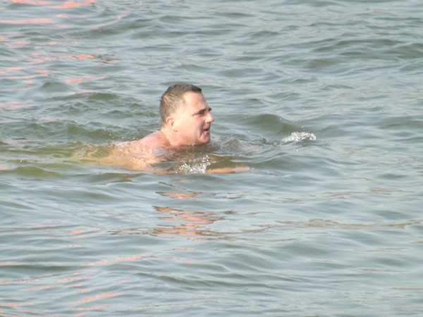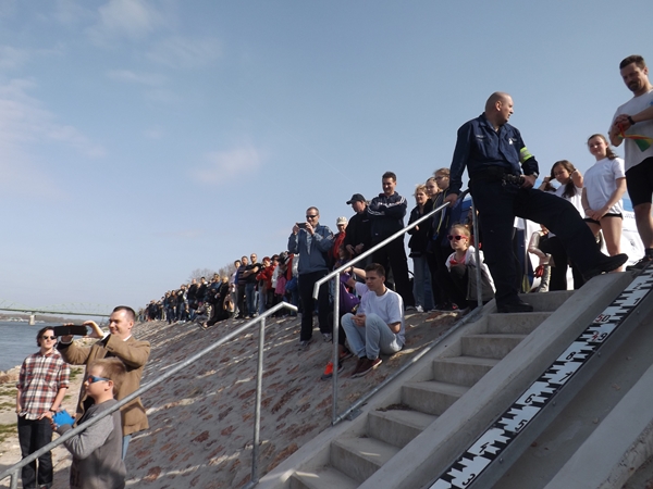 A rakparton összegyűlt tömeg egy percig sem unatkozott, hiszen a KVSE fit kidesei, az FBI Street Generations adott műsort, de bemutatót tartottak a zumbások is. Fél négykor jött a hír, hogy a rozmár megkezdte az átúszást. Útját végig biztosították, a vízi rendészet és a búvárok egyaránt bevetésre készen álltak. Nem volt azonban szükség rájuk, hiszen Schirilla 17 év tapasztalatával 30 perc alatt megtette a 400 méteres távot a 8-10 fokos vízben.