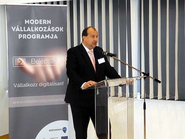 A Vállalkozz digitálisan! projekt komáromi helyszíne az Arany 17. Rendezvényközpont volt, ahol Zoltai Dániel, a Komárom-Esztergom Megyei Kereskedelmi és Iparkamara titkára köszöntötte a megjelenteket.
