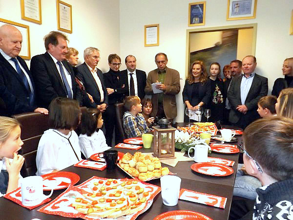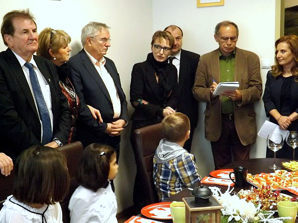 A szeretet szobája. Ezt a nevet is adhatjuk a Ho-Máhr Trans egyik helyiségének, ahol a terített asztalok mellé ültek le a megye több településéről – Tarján, Tata, Tatabánya, Oroszlány, Ács, Koppánymonostor – érkezett gyerekek. A Szent Ágota Gyermekvédelmi Szolgálat lakóotthonaiban töltik mindennapjaikat, és most, társaik nevében is, ünnepelni jöttek. Körülöttük meghatódott és mosolygó felnőttek álltak. A Segítő Jóbarátok – dr. Farkas Károly, dr. Dombi Péter, Honosiné Máhr Ágnes és Honosi Mihály – valamint számos megyei cég, szervezet, intézmény képviselője.