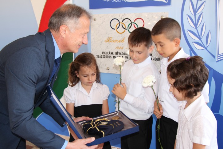 - A sport az túl azon, hogy egészség, szenvedély, szeretet és játék, emberré is nevel. Megtanít szerényen nyerni és emelt fővel veszíteni. Az életben is, ha nyersz, szerényen kell fogadni, a csapásokat, vereségeket pedig emelt fővel elviselni – mondta Bozsik Péter az édesapjáról elevezett új interaktív emlékfal avatóján az iskola aulájában.