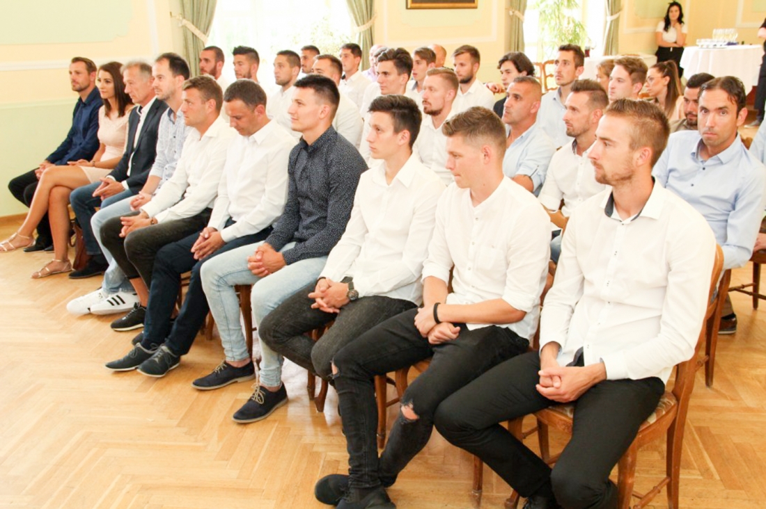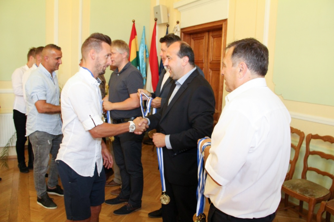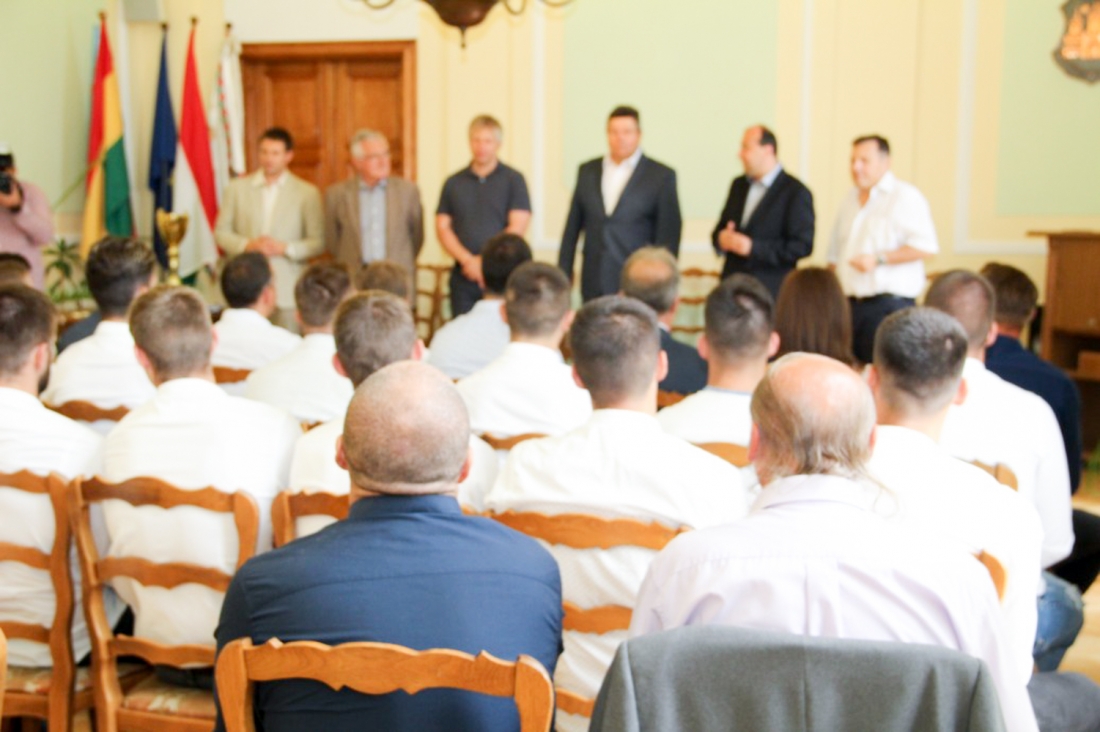 A hét elején dr. Molnár Attila polgármester, valamint a labdarúgó szakvezetés prominens tagjai köszöntötték a Városháza dísztermében az NB III-ba feljutott komáromi gárdát. A 2017/2018-as megyei bajnokság első helyezettje az érmek mellett a serleget is átvehette.