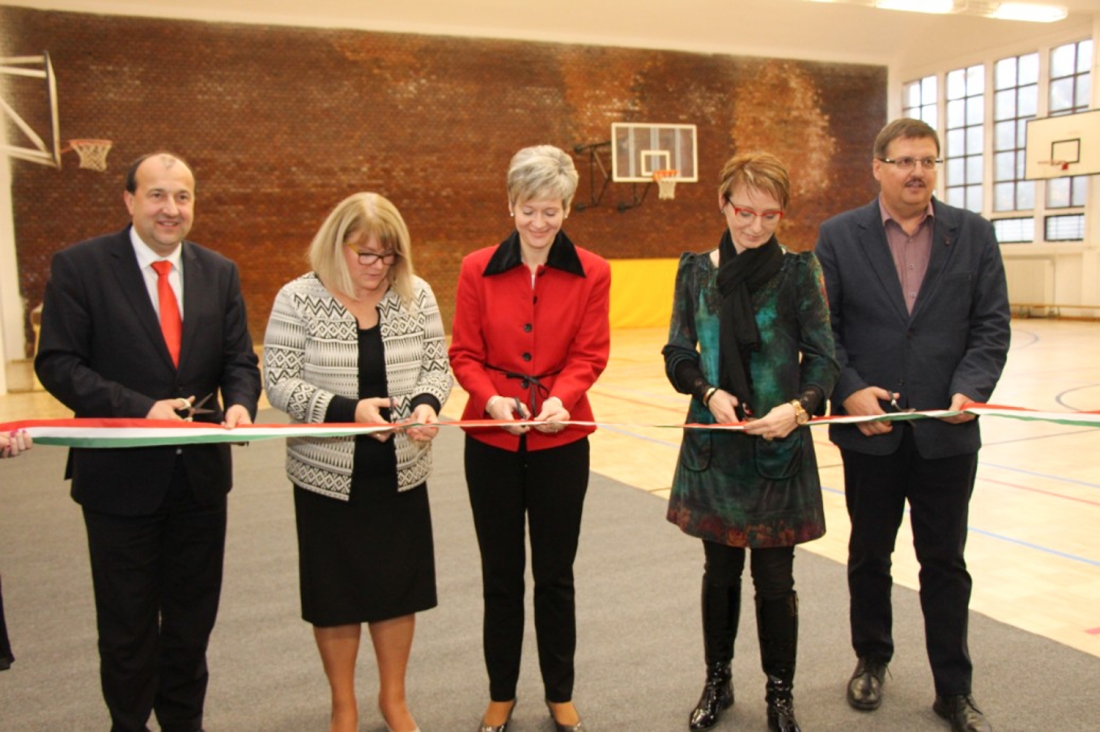 A két intézmény felújított sporttereit november 19-én közösen adta át a helyi és a megyei önkormányzat, a Tatabányai Tankerületi Központ, valamint a kivitelezést végző cég.