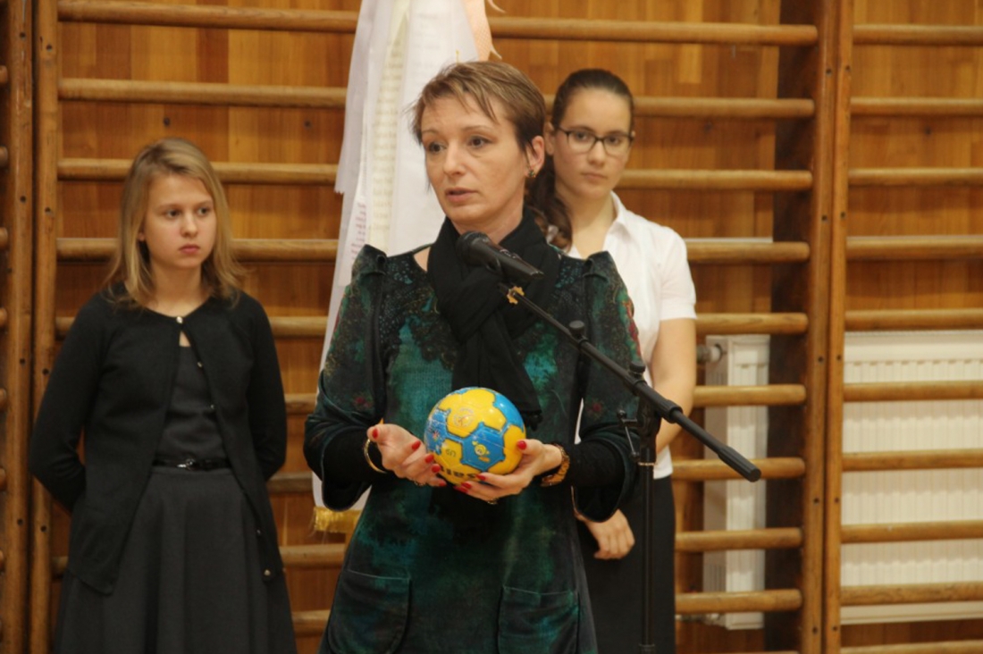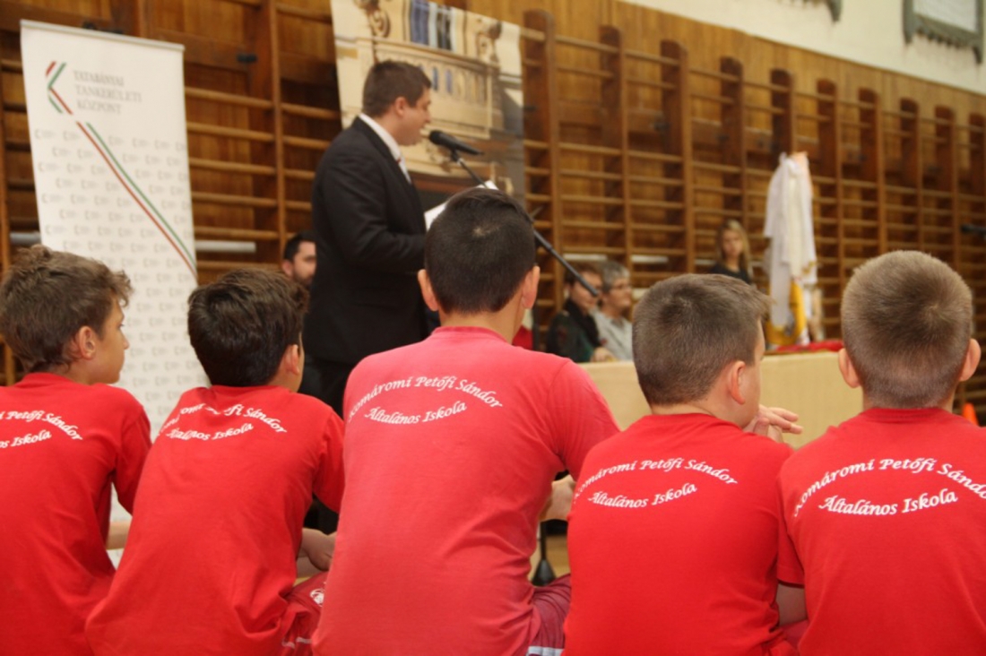 A tankerületi igazgató az átadón, hogy az iskola tornaterme több mint 40 millió forintból újult meg, míg a Petőfi korábbi betonos pályája 50 millió forintból kapott rekortán burkolatot.