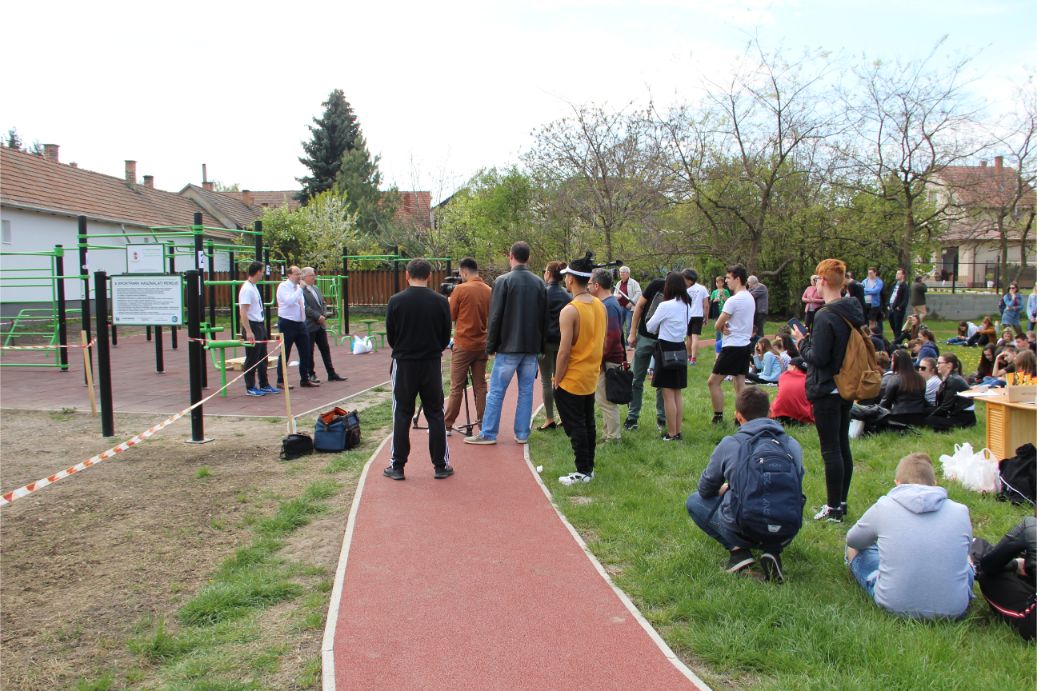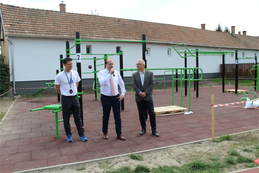 Ez utóbbi a Rüdiger tó partján áll, közvetlenül a 200 méteres rekortán borítású futókör mellett. A hivatalos átadón mind dr. Molnár Attila, mind pedig Turi Bálint alpolgármester azt hangsúlyozták, hogy remélik, minél többen veszik majd igénybe az új szabadtéri sporteszközt, hiszen a szabad levegőn való sportolás az egészségmegőrzés legeredményesebb módja.