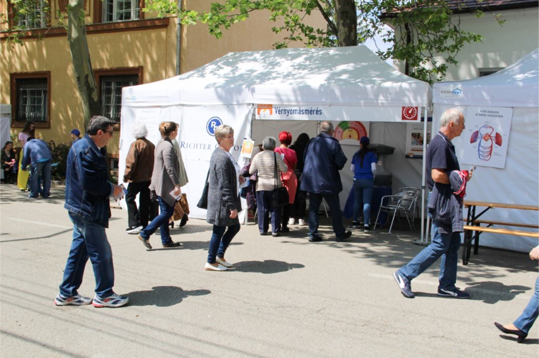 Verőfényes napsütésben vette kezdetét a Jókai ligetben megrendezett Richter Egészségváros az elmúlt hétvégén. A Richter Gedeon Nyrt. egészségtudatosságot és a betegségmegelőzést népszerűsítő országjáró szűrőprogramján, szombaton 9 és 17.00 óra között több mint 25 féle szűrésen és tanácsadáson illetve színes programon vehettek részt az ingyenes eseményre kilátogatók.