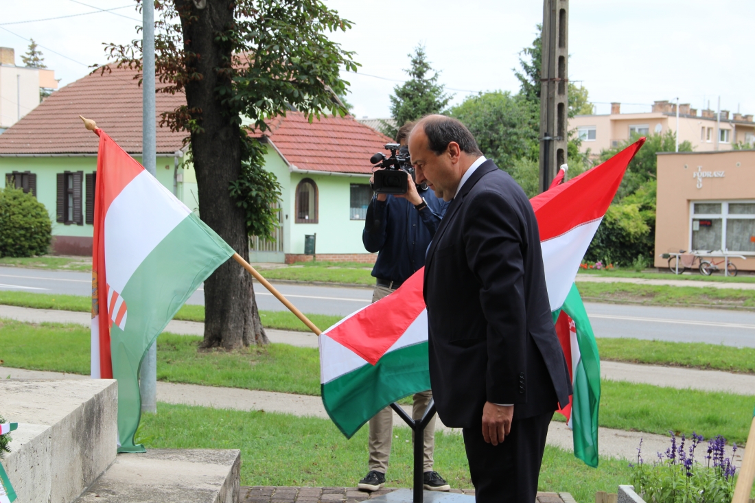 A megemlékezőket Hajnal Dóra önkormányzati képviselő, a Humán bizottság elnöke köszöntötte. Az eseményen, a szobor talapzatánál dr. Molnár Attila polgármester, Molnárné dr. Taár Izabella a Járási Hivatal vezetője, Turi Bálint alpolgármester és Szabó István önkormányzati képviselő koszorúzott.