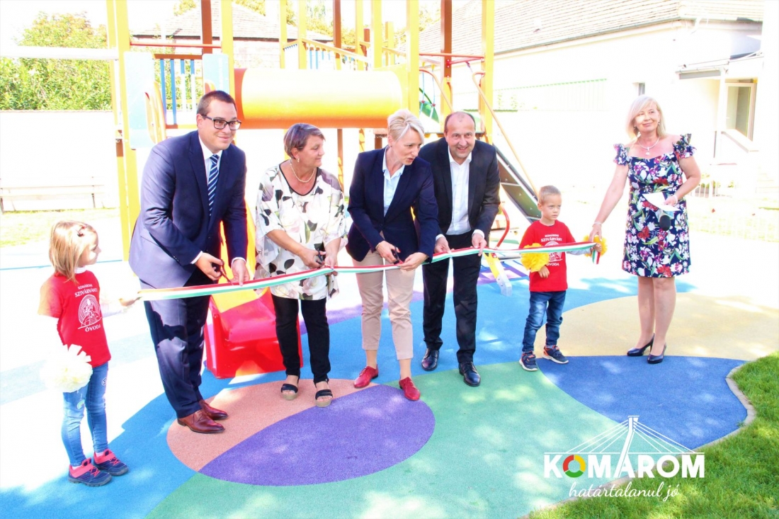 Dr. Molnár Attila felidézte, az önkormányzat vállalása volt, hogy három év alatt három milliárd forint értékben fejleszti a komáromi intézményeket, köztük a helyi óvodákat. Ezen intézmények korszerűsítése a Szivárvány Óvoda játszóudvarának átadásával befejeződött, de a munka még ebben az évben a szőnyi és a koppánymonostori bölcsőde felújításával folytatódik.