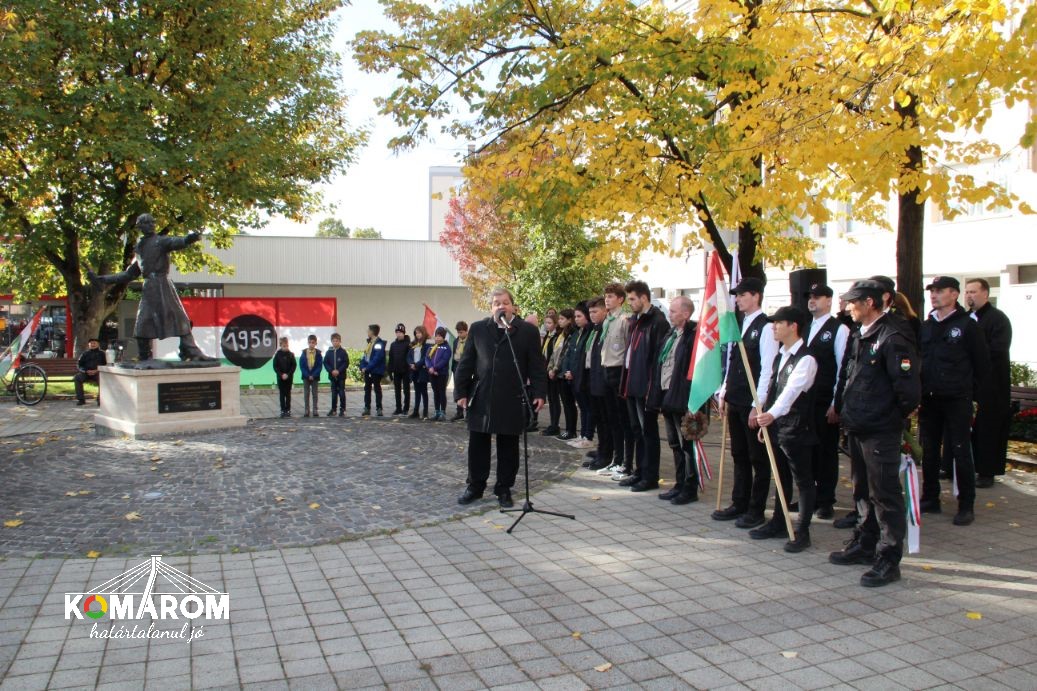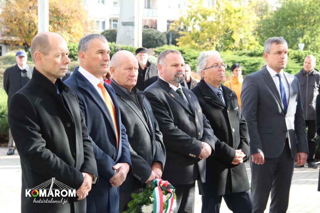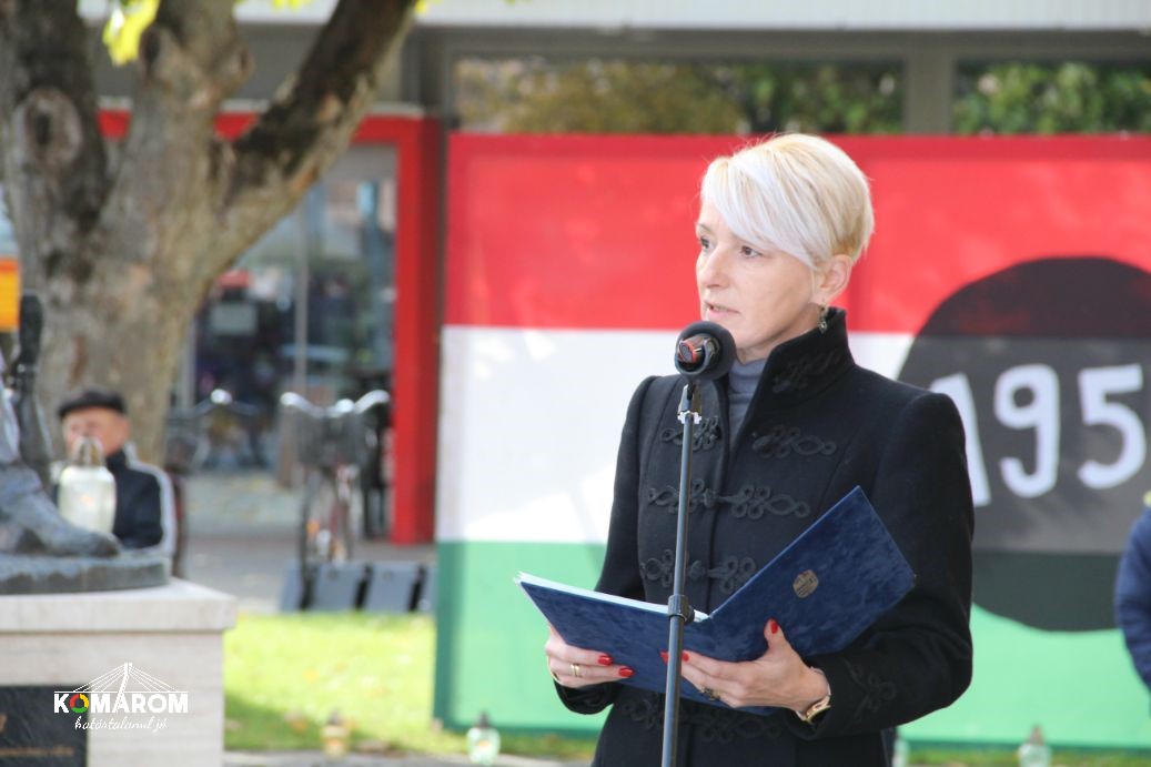 A szőnyi koszorúzást követően a városvezetés a volt lengyár terültén felállított kopjafánál helyezte el a megemlékezés virágait, majd a '56-os emlékműnél Czunyiné dr. Bertalan Judit térségünk országgyűlési képviselője mondott ünnepi beszédet.