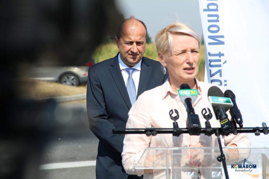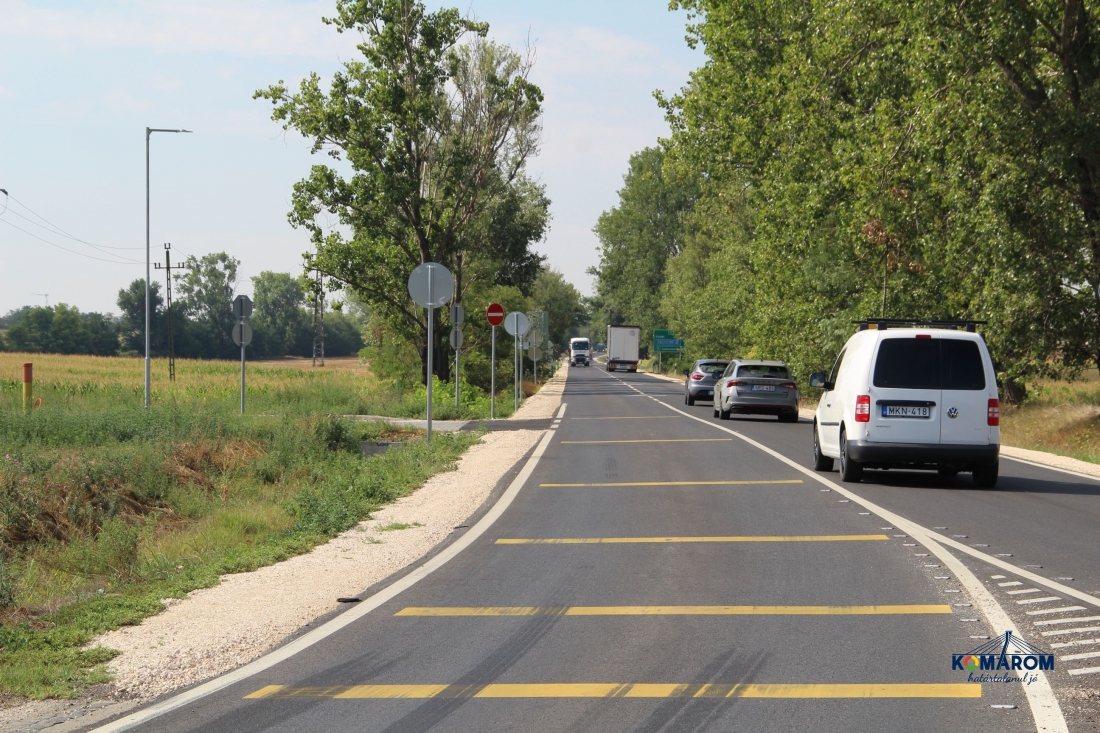 A Magyar Közút Nonprofit Zrt. ez év elején kezdte meg az érintett főút 5,5 kilométeres szakaszának felújítását a komáromi körforgalom és az M1-es autópálya között. A kizárólag hazai forrás felhasználásával, 1,4 milliárd Forintból elkészült utat július 27-e délelőtt adta át sajtótájékoztató keretében Czunyiné dr. Bertalan Judit, térségünk országgyűlési képviselője, dr. Molnár Attila polgármester és Szilvai József Attila, a Magyar Közút Nonprofit Zrt., vezérigazgatója.