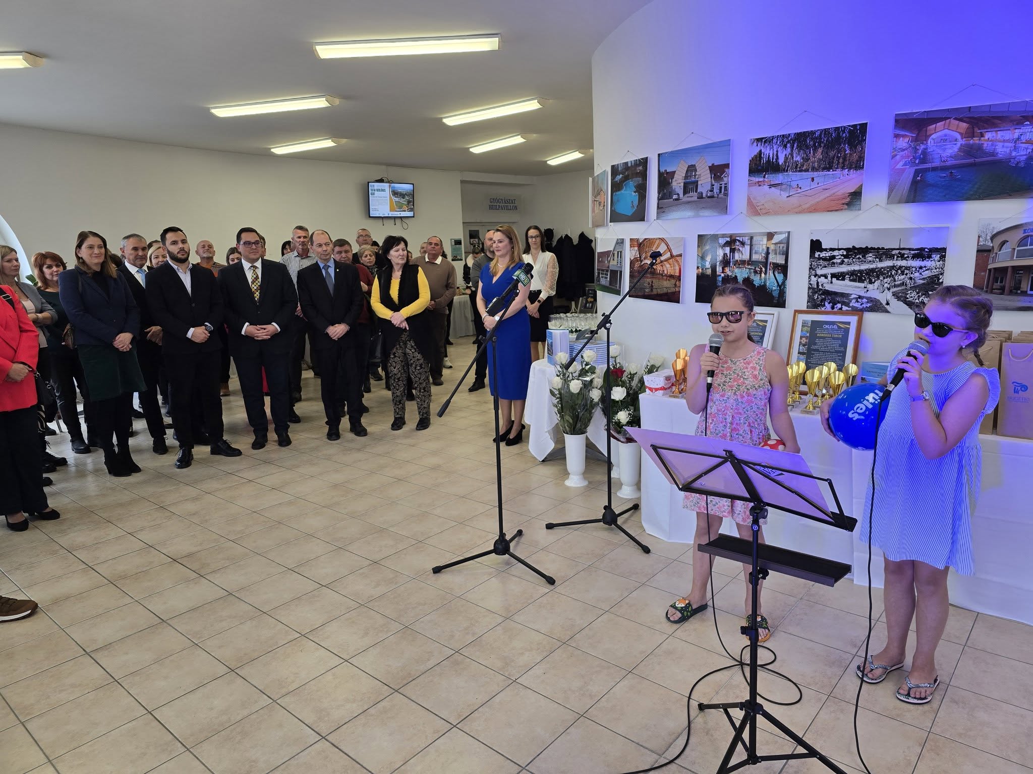 A megnyitón Kollár Lili és Kolozsvári Blanka, a Komáromi Egressy Béni Alapfokú Művészeti Iskola két növendéke egy dallal kedveskedett a megjelenteknek, majd Turi Bálint, a Brigetio Gyógyfürdő ügyvezető igazgatója köszöntötte a vendégeket.